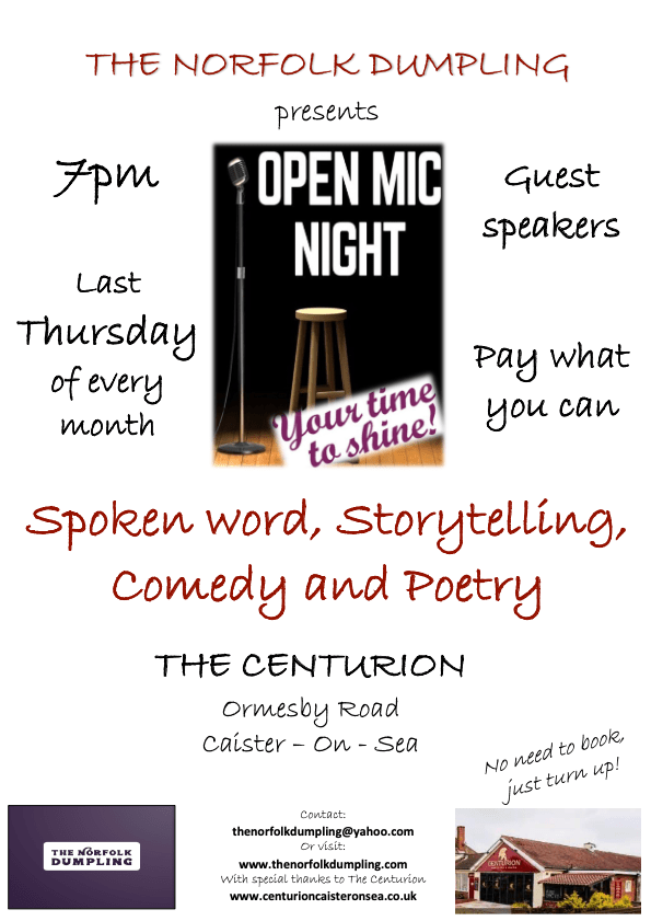 From Thursday 31st March, The Norfolk Dumpling will be hosting monthly open mic sessions at The Centurion, Caister.